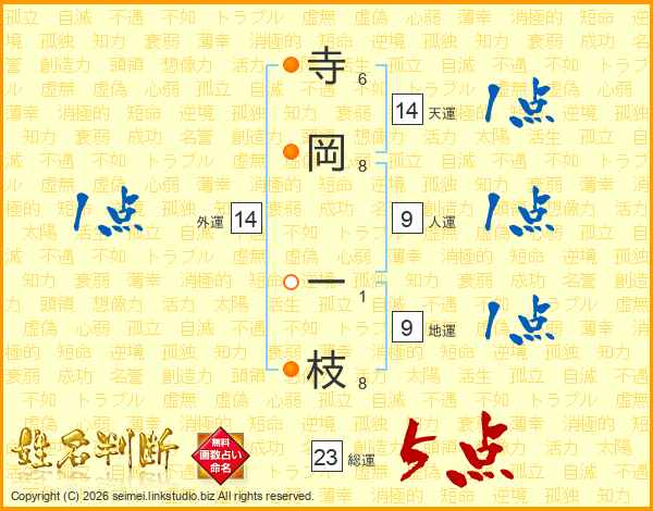 寺(6画)岡(8画) 一(1画)枝(8画)