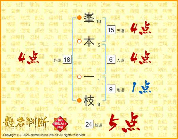峯(10画)本(5画) 一(1画)枝(8画)