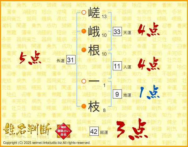 嵯(13画)峨(10画)根(10画) 一(1画)枝(8画)
