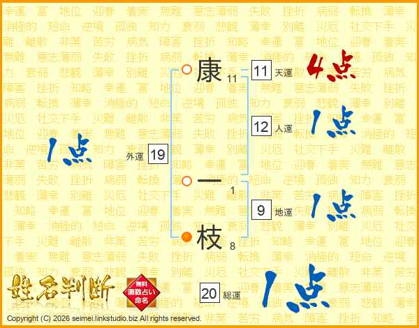 康一枝さんの総運は20画の1点!