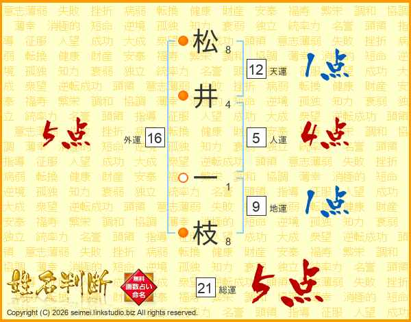 松井一枝さんの総運は21画の5点!