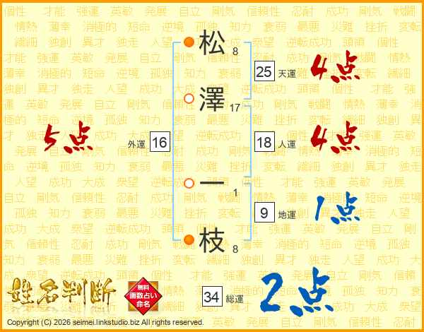 松(8画)澤(17画) 一(1画)枝(8画)