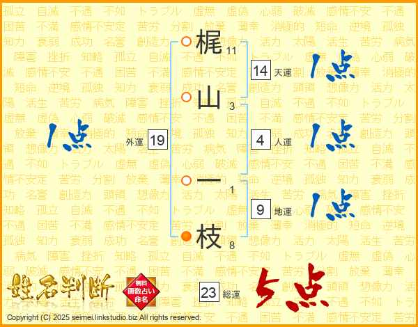 梶(11画)山(3画) 一(1画)枝(8画)