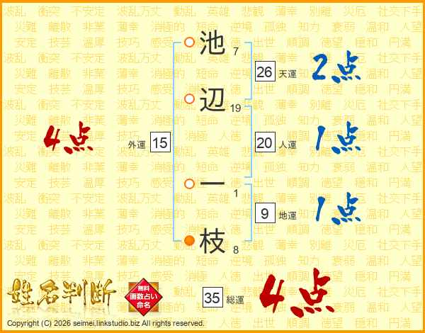 池辺一枝さんの天運は26画の2点!