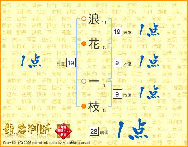 浪花一枝さんの総運は28画の1点!