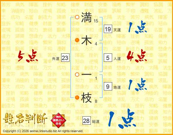 満(15画)木(4画) 一(1画)枝(8画)