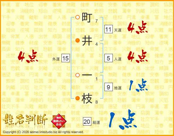 町(7画)井(4画) 一(1画)枝(8画)