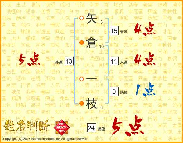 矢倉一枝さんの外運は13画の5点!