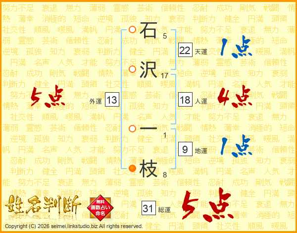 石沢一枝さんの総運は31画の5点!