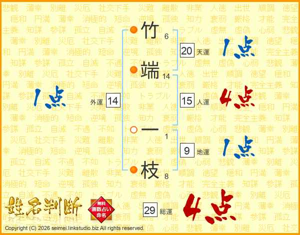 竹端一枝さんの総運は29画の4点!