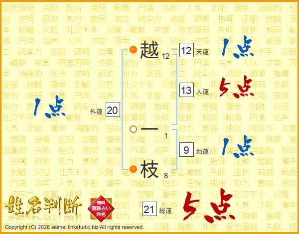 越一枝さんの総運は21画の5点!