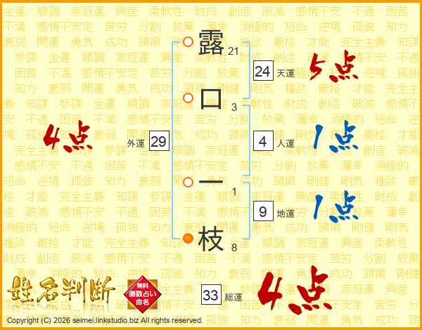 露口一枝さんの総運は33画の4点!