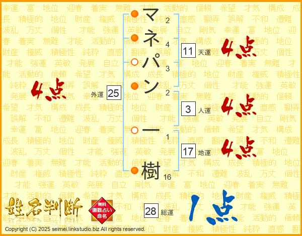 マネパン一樹さんの地運は17画の4点!