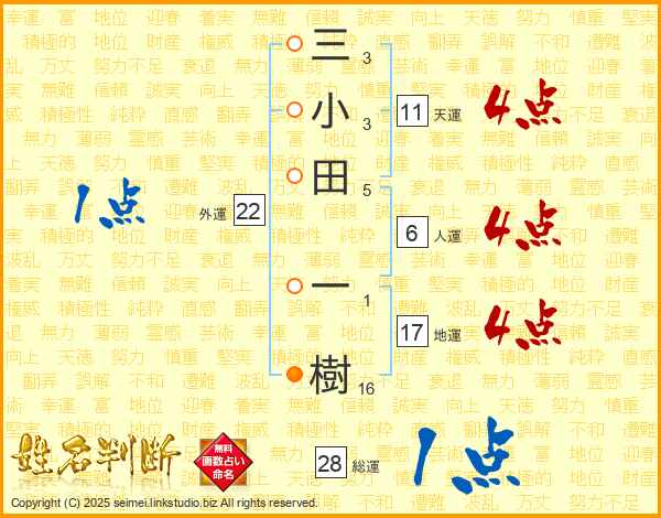 三(3画)小(3画)田(5画) 一(1画)樹(16画)