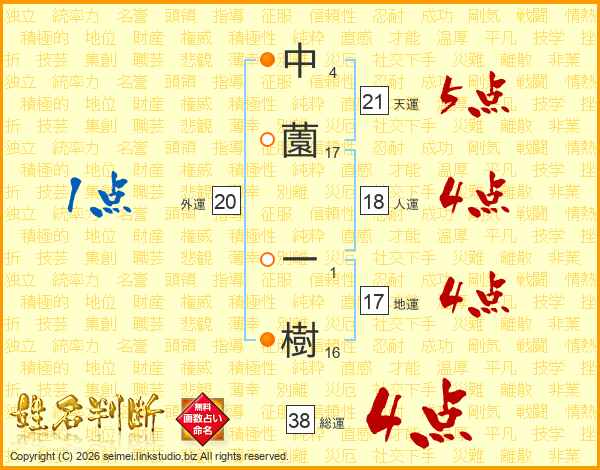 中薗一樹さんの総運は38画の4点!