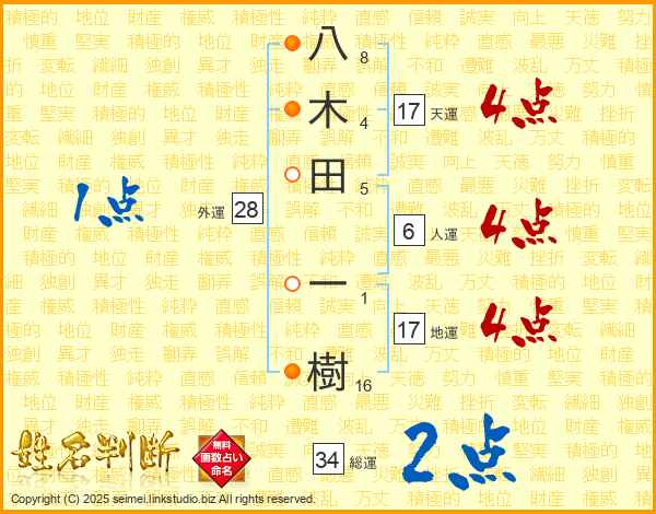 八(8画)木(4画)田(5画) 一(1画)樹(16画)