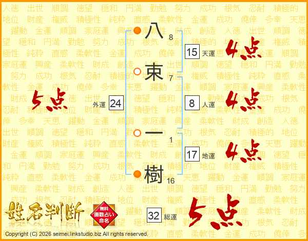 八束一樹さんの総運は32画の5点!