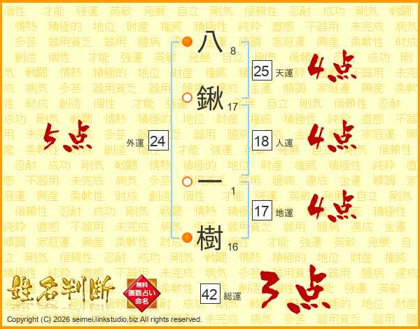 八鍬一樹さんの天運は25画の4点!