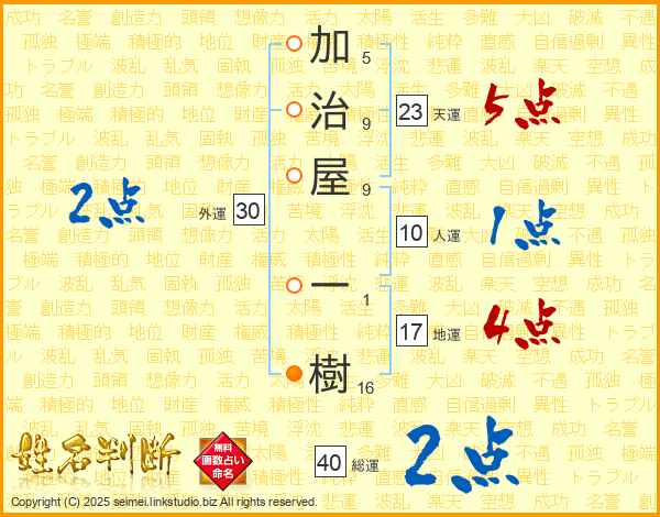加治屋一樹さんの天運は23画の5点!