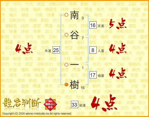 南谷一樹さんの総運は33画の4点!