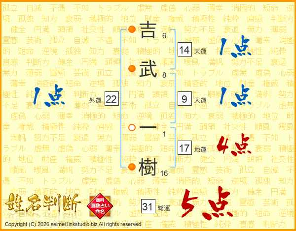 吉武一樹さんの総運は31画の5点!