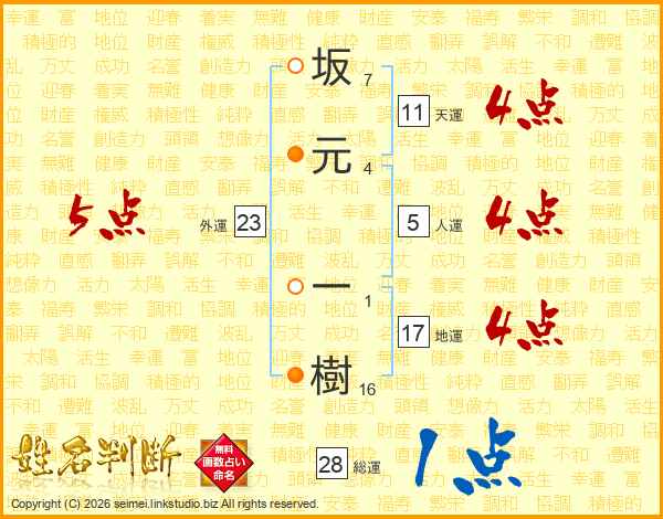 坂元一樹さんの外運は23画の5点!