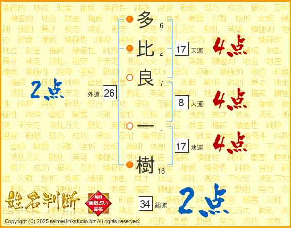 多比良一樹さんの天運は17画の4点!