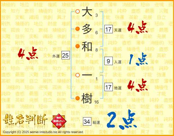 大多和一樹さんの天運は17画の4点!