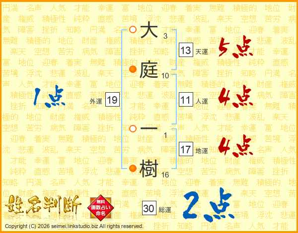 大庭一樹さんの総運は30画の2点!