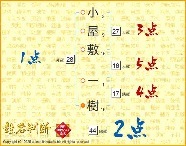 小屋敷一樹さんの総運は44画の2点!