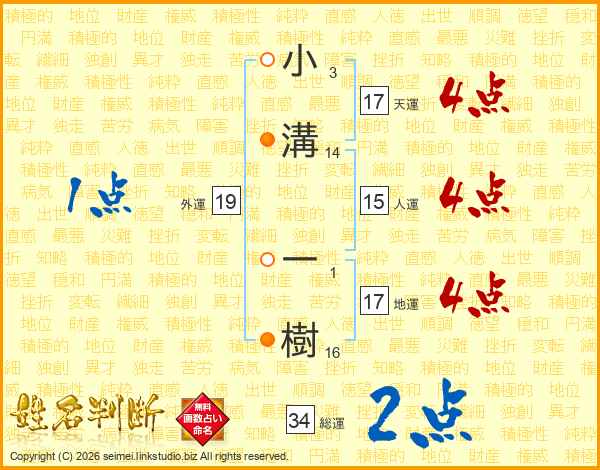 小溝一樹さんの天運は17画の4点!