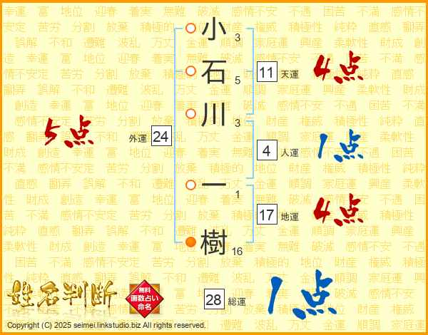 小石川一樹さんの総運は28画の1点!