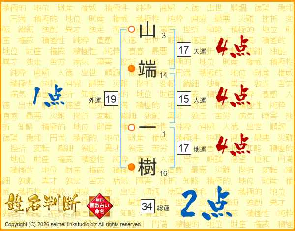 山端一樹さんの地運は17画の4点!