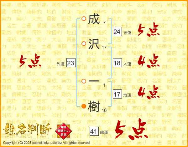 金運 順調 家庭運 興産 柔軟性 財成 創造