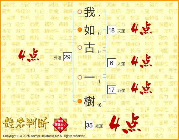 我(7画)如(6画)古(5画) 一(1画)樹(16画)