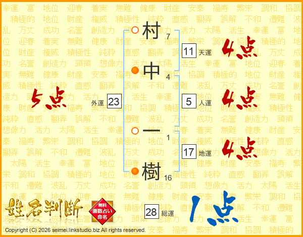 村中一樹さんの地運は17画の4点!