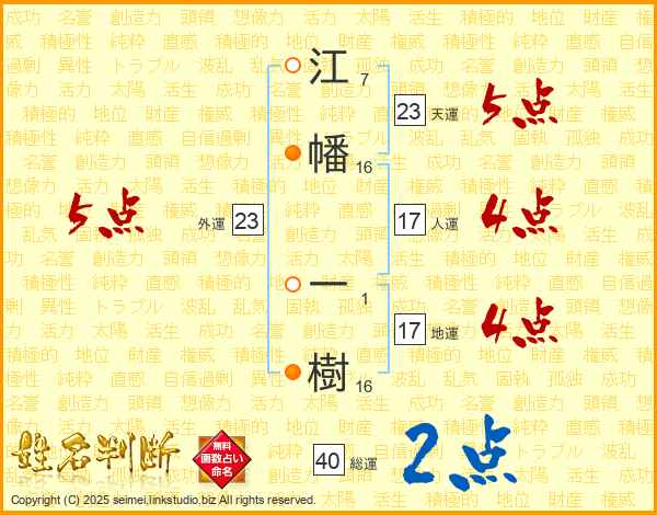 江幡一樹さんの総運は40画の2点!