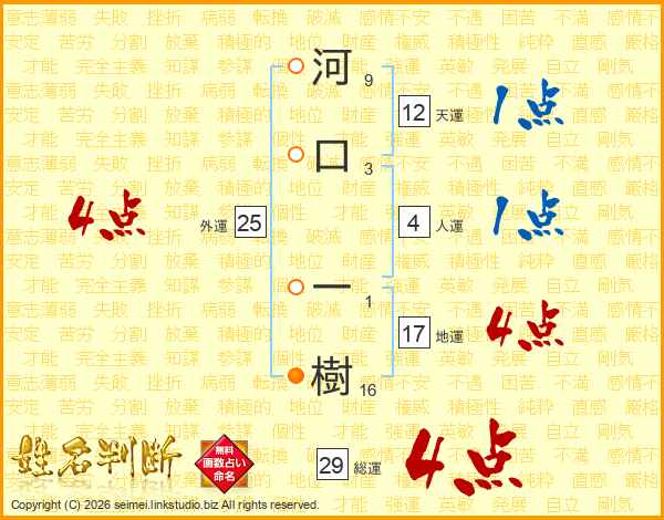 河口一樹さんの天運は12画の1点!