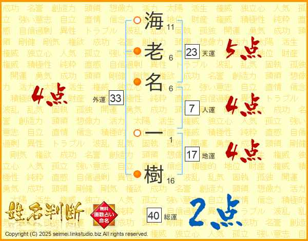 海(11画)老(6画)名(6画) 一(1画)樹(16画)
