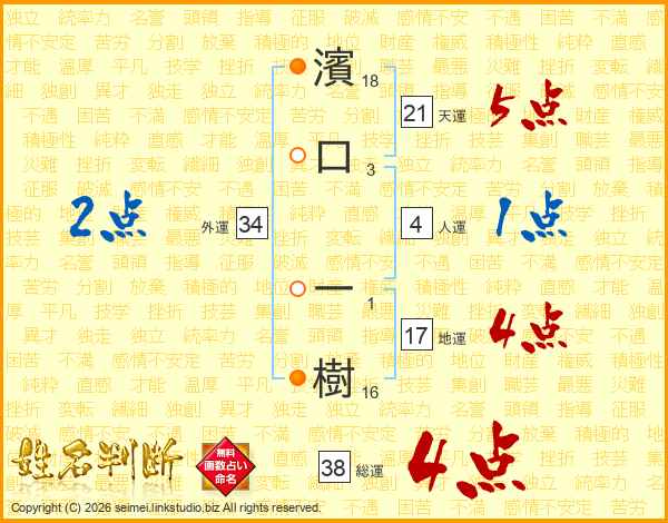 濱口一樹さんの総運は38画の4点!