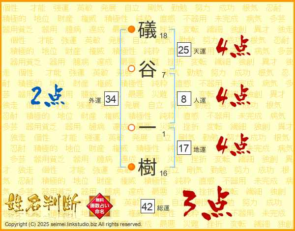 礒(18画)谷(7画) 一(1画)樹(16画)