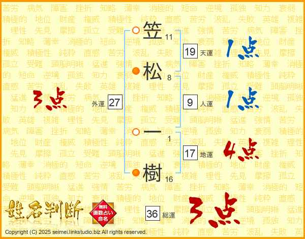 笠松一樹さんの総運は36画の3点!