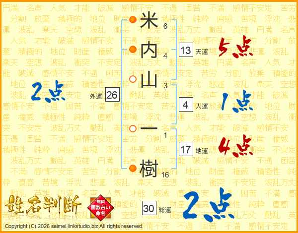 米内山一樹さんの天運は13画の5点!