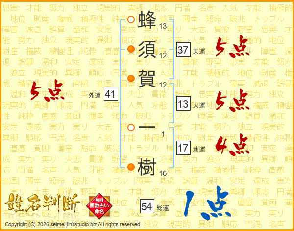 蜂須賀一樹さんの総運は54画の1点!