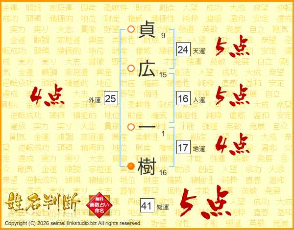 貞広一樹さんの総運は41画の5点!