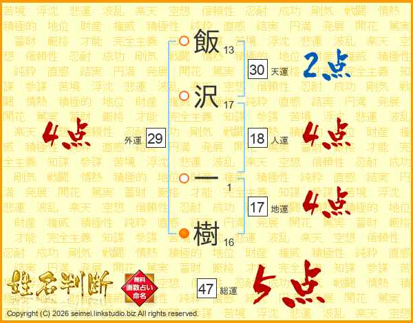 飯沢一樹さんの総運は47画の5点!