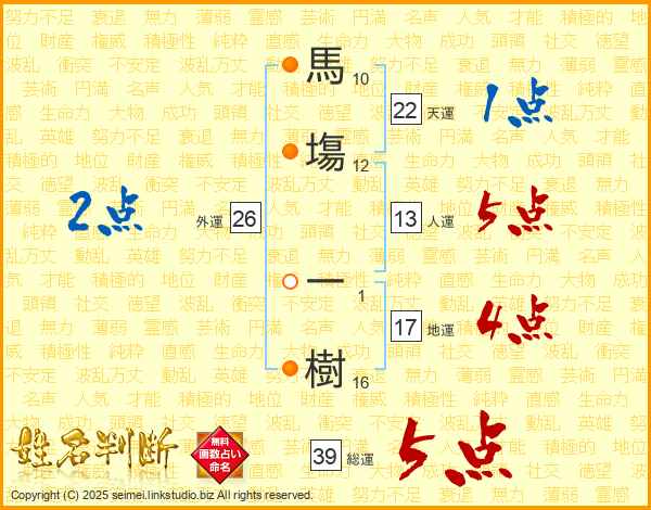 馬塲一樹さんの総運は39画の5点!