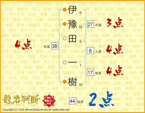 伊豫田一樹さんの地運は17画の4点!