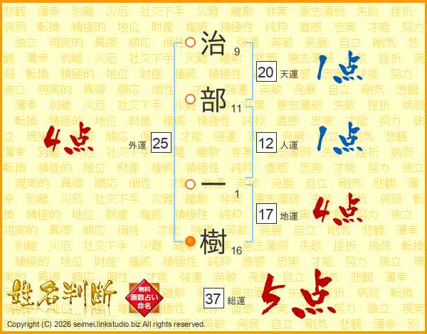 治部一樹さんの人運は12画の1点!