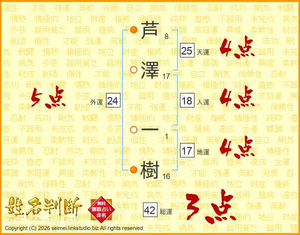 芦澤一樹さんの天運は25画の4点!